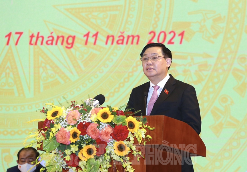 Chủ tịch Quốc hội bày tỏ ấn tượng sâu sắc trước tình cảm, tinh thần yêu nước, khát vọng phát triển, một lòng tin tưởng vào sự lãnh đạo của Đảng của cử tri Hải Phòng và tin tưởng rằng đây sẽ là nguồn lực quan trọng và quý giá góp phần thúc đẩy sự phát triển của thành phố và đất nước. Chủ tịch Quốc hội Vương Đình Huệ trân trọng cảm ơn những ghi nhận, đánh giá cụ thể, thiết thực, sâu sắc của cử tri Hải Phòng đối với hoạt động của Quốc hội khóa 15. Chủ tịch Quốc hội nêu rõ: Quốc hội khóa 15 đã, đang và sẽ không ngừng đổi mới, sáng tạo, linh hoạt, hoạt động hiệu lực, hiệu quả, đáp ứng được các yêu cầu cấp thiết từ thực tế cuộc sống, phục vụ cuộc sống, phục vụ nhân dân, thể hiện rõ nhất qua chất lượng các kỳ họp, các hoạt động của Ủy ban Thường vụ Quốc hội; các Ủy ban của Quốc hội; các cơ quan của Quốc hội; các đoàn đại biểu Quốc hội và đại biểu Quốc hội. Chất lượng, hiệu quả trong hoạt động của Quốc hội còn được khẳng định, đo lường qua việc phối hợp với Chính phủ, TAND tối cao, Viện KSND tối cao, Ủy ban MTTQ Việt Nam; được tiến hành đồng thời ở cả 3 lĩnh vực: lập pháp, giám sát và quyết định các vấn đề quan trọng của đất nước… Chủ tịch Quốc hội cho biết, đáp ứng các yêu cầu từ thực tế cuộc sống, Quốc hội sẽ tổ chức kỳ họp chuyên đề cuối năm nay để quyết định 5 vấn đề quan trọng, cấp bách của đất nước. Như vậy, đây là lần đầu, Quốc hội tổ chức tới 4 kỳ họp trong 1 năm.