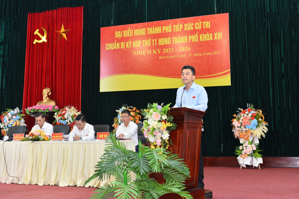 Chuẩn bị cho Kỳ họp thứ 11 HĐND thành phố khoá XVI nhiệm kỳ 2021-2026, chiều 21/6, Chủ tịch UBND thành phố Nguyễn Văn Tùng và Tổ đại biểu HĐND thành phố số 1 tiếp xúc cử tri huyện đảo Bạch Long Vỹ.