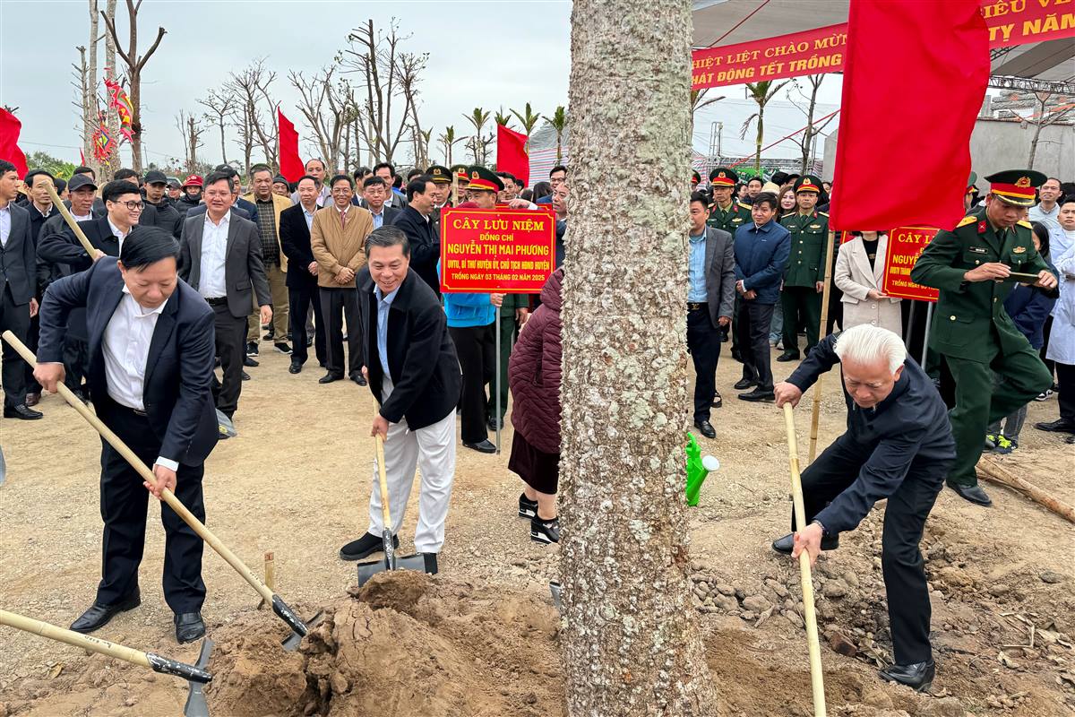 Ngay sau Lễ phát động, lãnh đạo thành phố, cùng đại biểu các sở, ban, ngành, lãnh đạo huyện Tiên Lãng và người dân tham gia trồng 200 cây gạo, mít, xoài trong khuôn viên và đường vào Đền Để Xuyên.