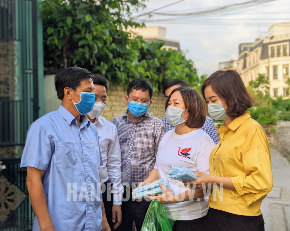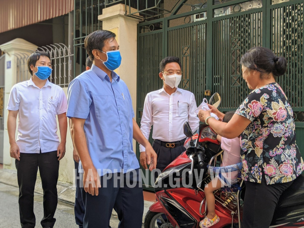 Chiều 19/8, Chủ tịch UBND thành phố Nguyễn Văn Tùng cùng lãnh đạo quận Hồng Bàng đi kiểm tra đột xuất công tác phòng chống dịch COVID-19 tại một số khu dân cư thuộc phường Trại Chuối, quận Hồng Bàng, đồng thời gặp gỡ trao đổi với một số người dân phường Trại Chuối về những thông tin biện pháp phòng chống dịch COVID-19.