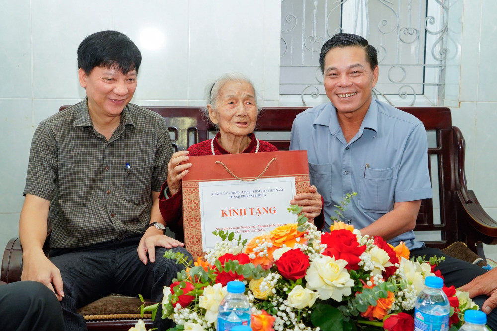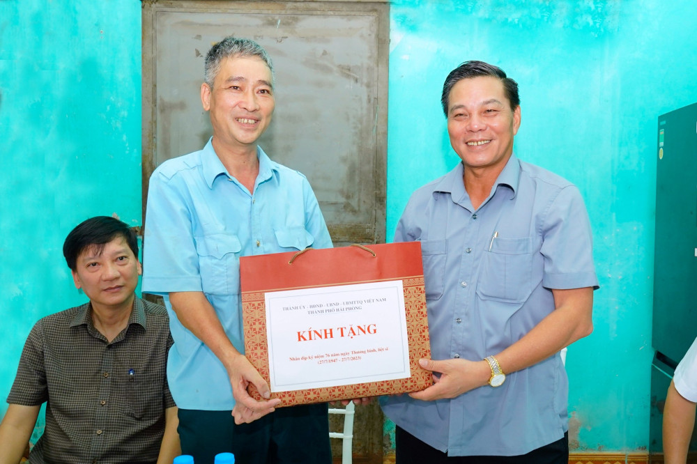 Chủ tịch UBND thành phố đến thăm, tặng quà cụ Đỗ Thị Nhật, sinh năm 1926, là Bà mẹ Việt Nam Anh hùng tại Tổ dân phố Phấn Dũng 1, phường Anh Dũng, quận Dương Kinh; thăm ông Đào Duy Lanh, sinh năm 1963, là thương binh hạng 1/4, tỷ lệ tổn thương cơ thể 81%, tại Tổ dân phố Vọng Hải 1, phường Hưng Đạo, quận Dương Kinh.