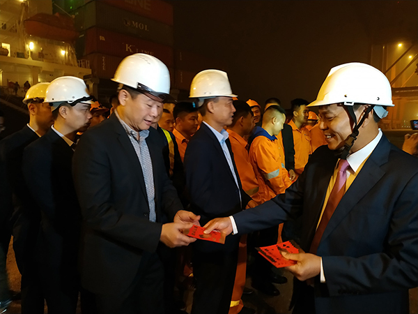Thăm và chúc tết cán bộ, nhân viên Cảng Tân Vũ, Chủ tịch UBND thành phố ghi nhận, biểu dương sự phát triển của Cảng Tân Vũ và những đóng góp đối với thành phố những năm qua.