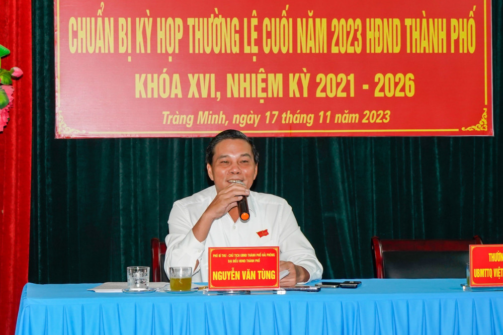 Chuẩn bị cho kỳ họp thường lệ cuối năm 2023 HĐND thành phố khóa XVI, nhiệm kỳ 2021-2026, tối 17/11, Chủ tịch UBND thành phố Nguyễn Văn Tùng tiếp xúc cử tri nơi cư trú tại phường Tràng Minh, quận Kiến An.