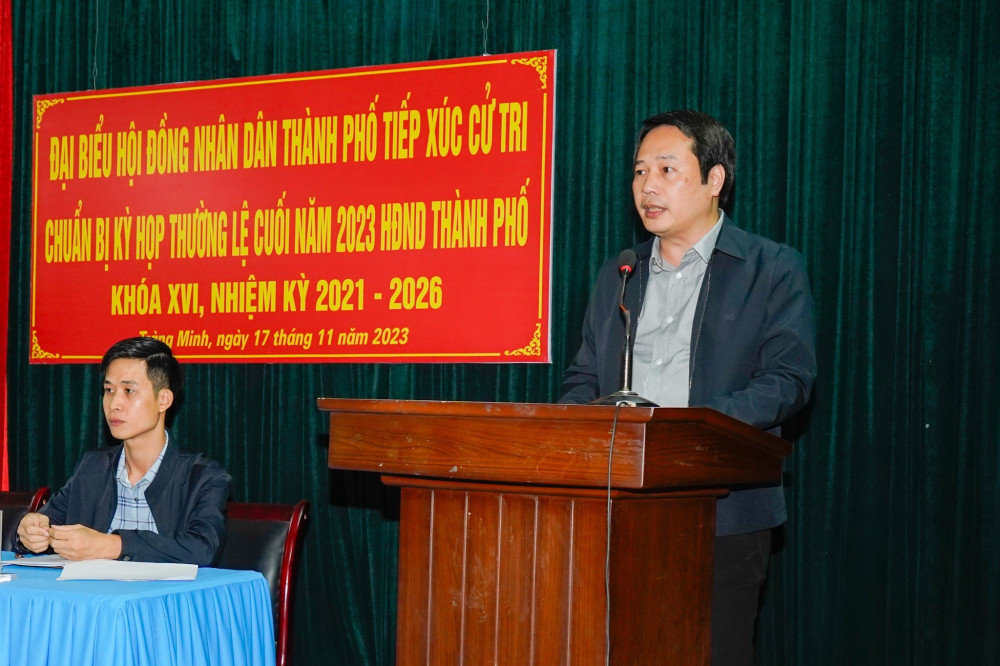 Sau khi nghe báo cáo, cử tri phường Tràng Minh bày tỏ niềm vui mừng, phấn khởi trước những kết quả mà thành phố đạt được trong năm 2023. Đồng thời, tập trung kiến nghị với thành phố một số vấn đề: Đề xuất thành phố quan tâm chỉ đạo các cơ quan xem xét Hợp đồng kinh tế giao đất đồi trồng rừng đối với 5 hộ dân thuộc phường Tràng Minh từ năm 1994 để có cơ chế hỗ trợ kinh phí bằng tiền hoặc cho phép các hộ dân khai thác, thu hoạch theo quy định để các hộ dân đỡ thiệt thòi vì công sức chăm sóc, bảo vệ rừng bao năm qua. Bên cạnh đó, tiếp tục quan tâm chỉ đạo các cơ quan, ban, ngành thành phố xem xét tiếp tục hỗ trợ kinh phí hàng năm và tăng mức hỗ trợ chăm sóc rừng phòng hộ trên địa bàn thành phố nói chung và phường Tràng Minh nói riêng.