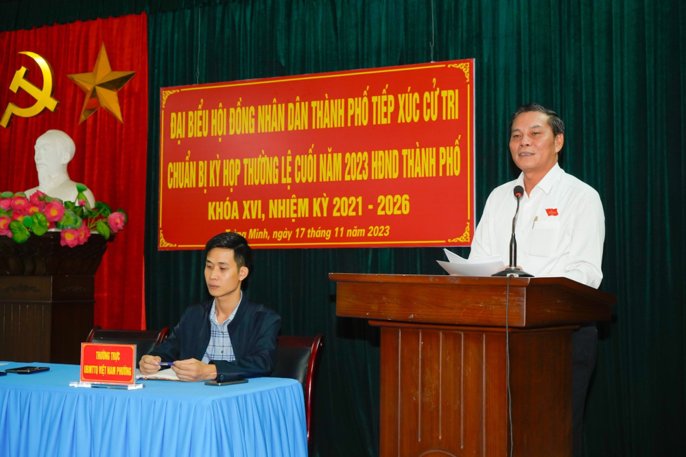 Tại buổi tiếp xúc, cử tri được thông tin về nội dung, thời gian tiến hành kỳ họp; báo cáo kết quả phát triển KT-XH, QP-AN thành phố năm 2023; kế hoạch phát triển KT-XH, QP-AN thành phố năm 2024 và hai đề án được đăng báo; kết quả việc giải quyết các ý kiến, kiến nghị của cử tri địa phương tại kỳ tiếp xúc trước.