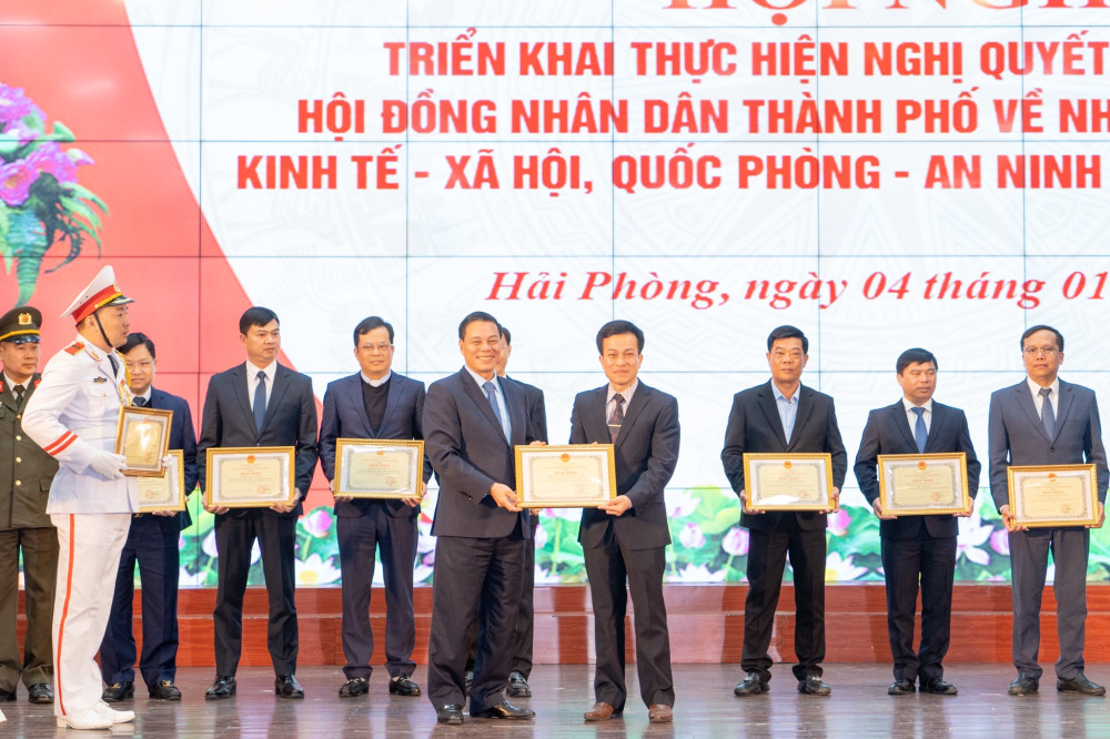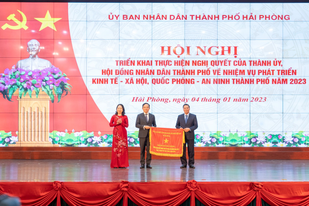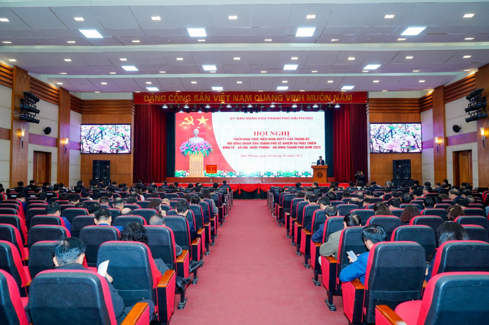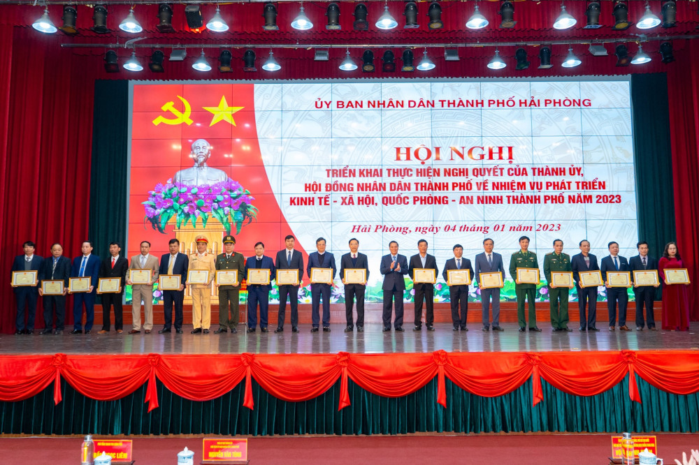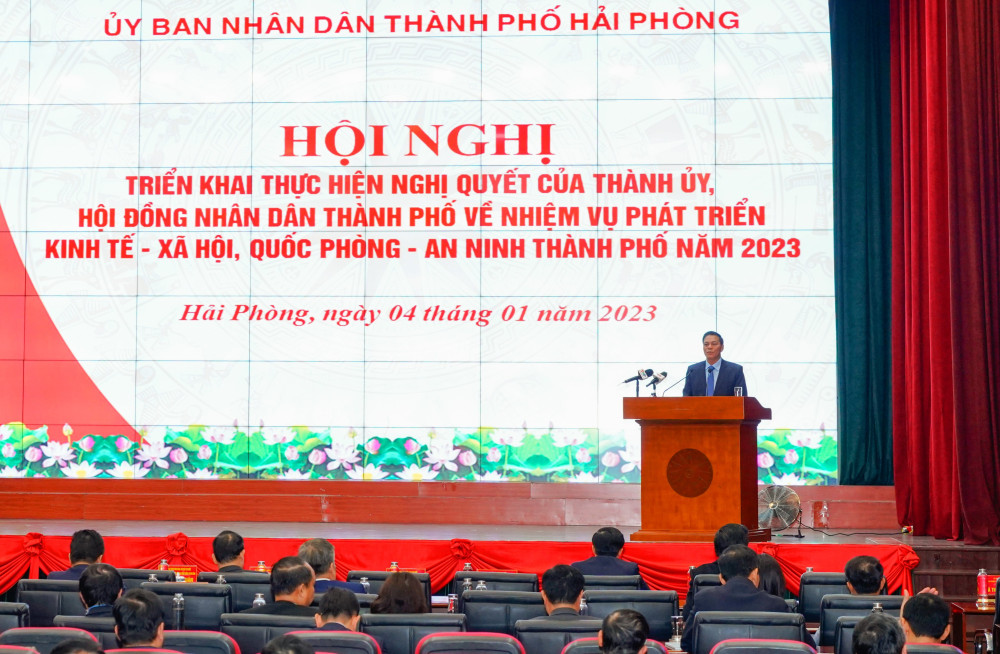 Tại hội nghị, đồng chí Lê Anh Quân, Phó Chủ tịch Thường trực UBND thành phố công bố các quyết định của UBND thành phố về giao chỉ tiêu kế hoạch phát triển KTXH năm 2023: Tổng thu ngân sách nhà nước trên địa bàn 116.442.123 triệu đồng; trong đó, thu nội địa 42.500.000 triệu đồng, thu xuất nhập khẩu 69.000.000 triệu đồng; tốc độ tăng trưởng từ 12,7-13%/; GRDP bình quân đầu người 8.150 USD/người/năm.