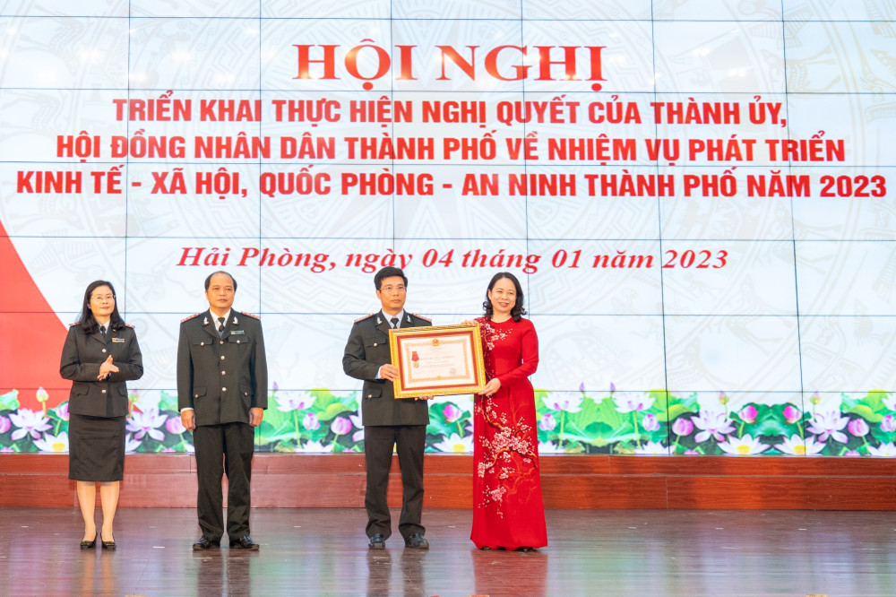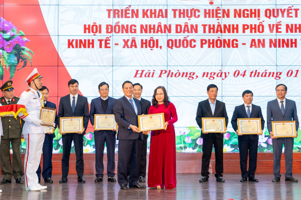 Tại Hội nghị, đồng chí Phó Chủ tịch nước Võ Thị Ánh Xuân trao Cờ thi đua của Chính phủ cho thành phố Hải Phòng-Đơn vị dẫn đầu Cụm thi đua 5 thành phố trực thuộc Trung ương năm 2021; trao Huân Chương lao động Hạng Nhì cho Thanh tra thành phố Hải Phòng vì đã có thành tích xuất sắc trong công tác từ năm 2017-2021. Dịp này, Chủ tịch UBND thành phố tặng bằng khen cho 78 tập thể và 140 cá nhân có thành tích xuất sắc trong công tác giải phóng mặt bằng. Hội nghị nghe Công bố kết quả đánh giá chỉ số CCHC thành phố năm 2022. Theo đó, Sở Giao thông vận tải tiếp tục duy trì vị trí dẫn đầu. Ở khối quận, huyện, UBND quận Hải An và UBND huyện An Lão có sự tiến bộ vượt bậc (UBND quận Hải An từ vị trí thứ 6 lên vị trí thứ nhất, UBND huyện An Lão từ vị trí thứ 10 lên vị trí thứ 4).