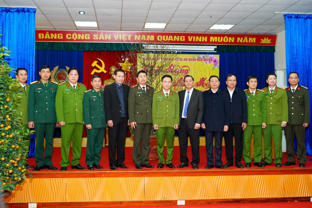 Đến thăm chúc Tết tại Công an quận Ngô Quyền, Chủ tịch UBND thành phố thông tin nhanh về những kết quả nổi bật trong phát triển kinh tế xã hội của thành phố, đồng thời ghi nhận những đóng góp của lực lượng Công an quận trong công tác bảo đảm an ninh chính trị, trật tự an toàn xã hội, đặc biệt thành tích trong công tác tuyên truyền, vận động, tổ chức cưỡng chế GPMB phục vụ các Dự án trọng điểm, đảm bảo an ninh trật tự, an toàn tuyệt đối. Chủ tịch UBND thành phố đề nghị Công an quận Ngô Quyền trước mắt tập trung làm tốt công tác bảo đảm an ninh trật tự, tăng cường tuần tra kiểm soát, thu hồi vũ khí vật liệu nổ, kiểm soát pháo nổ, bảo đảm an toàn cho Nhân dân vui Xuân, đón Tết.
