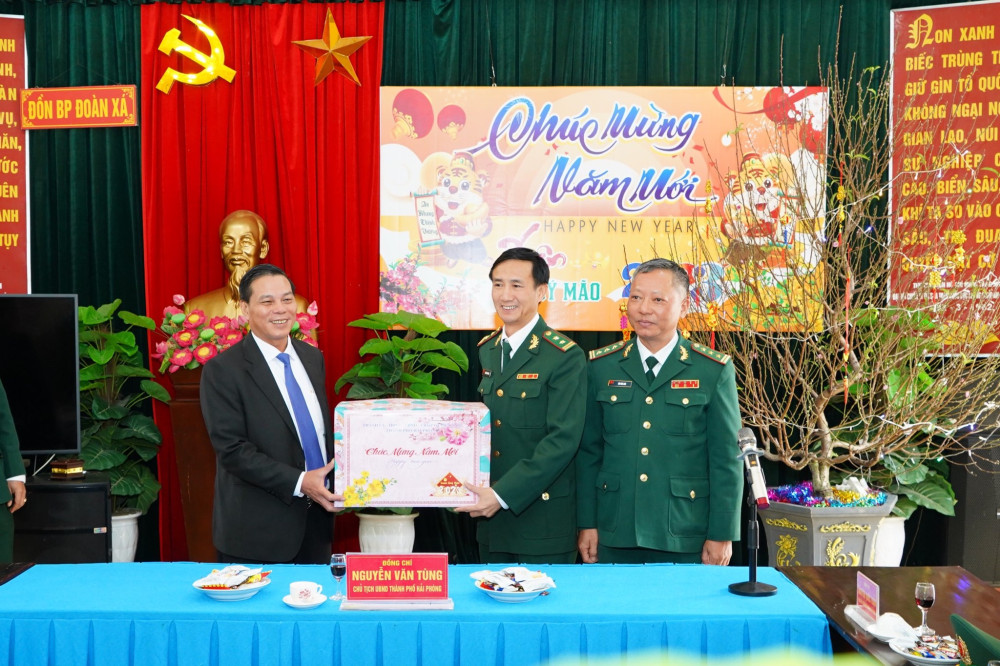 Đến thăm Đồn Biên phòng Đoàn Xá, huyện Kiến Thuỵ, Chủ tịch UBND thành phố chúc cán bộ, chiến sỹ đơn vị đón Xuân mới nhiều niềm vui, nỗ lực phấn đấu hoàn thành tốt nhiệm vụ được giao. Chủ tịch lưu ý đơn vị duy trì nghiêm chế độ trực sẵn sàng chiến đấu, góp phần cùng các lực lượng bảo đảm an ninh chính trị, trật tự an toàn xã hội.