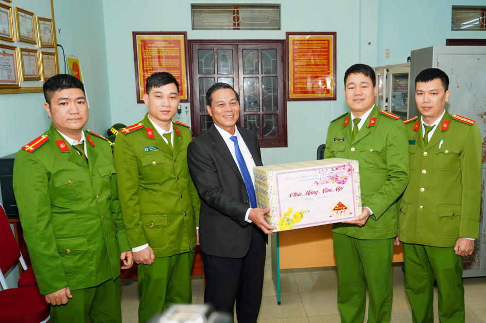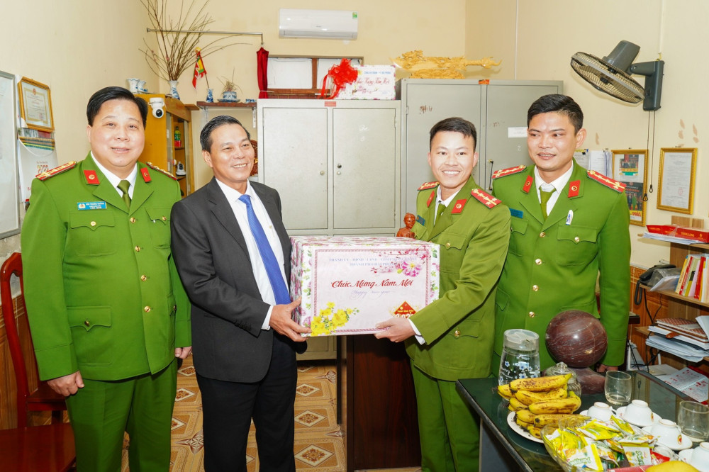 Tại Công an huyện Thuỷ Nguyên, Chủ tịch UBND thành phố động viên thăm hỏi và gửi lời chúc mừng Năm mới tới toàn thể cán bộ và chiến sỹ của đơn vị. Chủ tịch UBND thành phố đề nghị đơn vị chủ động kế hoạch ứng trực, tăng cường tuần tra, kiểm soát, bảo đảm an ninh trật tự, an toàn giao thông bảo đảm bình yên cho người dân đón Tết Nguyên đán.