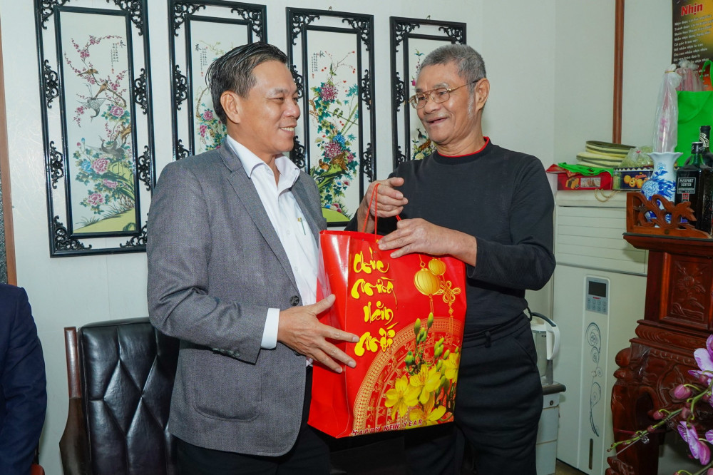 Tại các gia đình, Chủ tịch UBND thành phố Nguyễn Văn Tùng trao quà của thành phố đến các gia đình người có công, Thiếp mừng thọ và quà của Chủ tịch nước chúc thọ công dân tròn 100 tuổi và chúc các gia đình luôn dồi dào sức khỏe, đón Tết an khang, thịnh vượng.