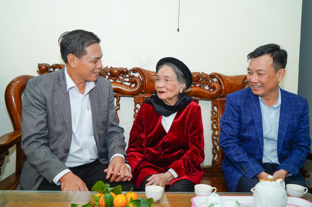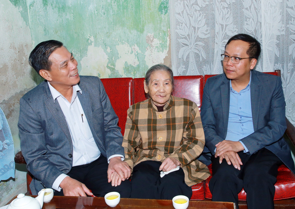 Thăm, chúc Tết bà Nguyễn Thị Tầm, sinh năm 1927 là mẹ liệt sỹ Vũ Gia Thụy, tại phường Nghĩa Xá, quận Lê Chân.