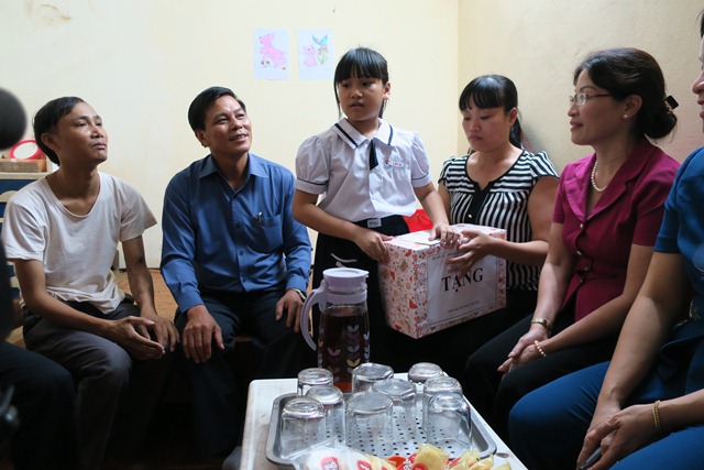 Đến thăm và trò chuyện với gia đình, Chủ tịch UBND thành phố bày tỏ sự thông cảm với hoàn cảnh của cháu, mong gia đình khắc phục khó khăn, nuôi dạy cháu thành công dân có ích cho xã hội.