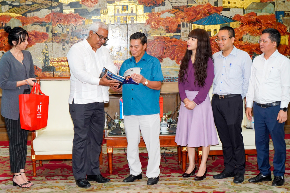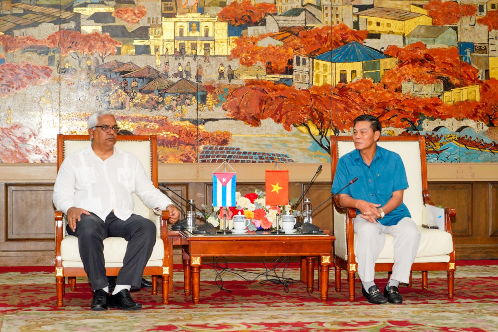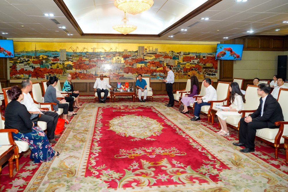 Vui mừng chào đón Đoàn công tác Bộ Tư pháp Cuba đến thăm thành phố Hải Phòng, Chủ tịch UBND thành phố Nguyễn Văn Tùng cảm ơn tình cảm và sự giúp đỡ mà nhân dân Cuba đã dành cho nhân dân Việt Nam nói chung và thành phố Hải Phòng nói riêng trong cuộc kháng chiến bảo vệ độc lập, chủ quyền của đất nước.