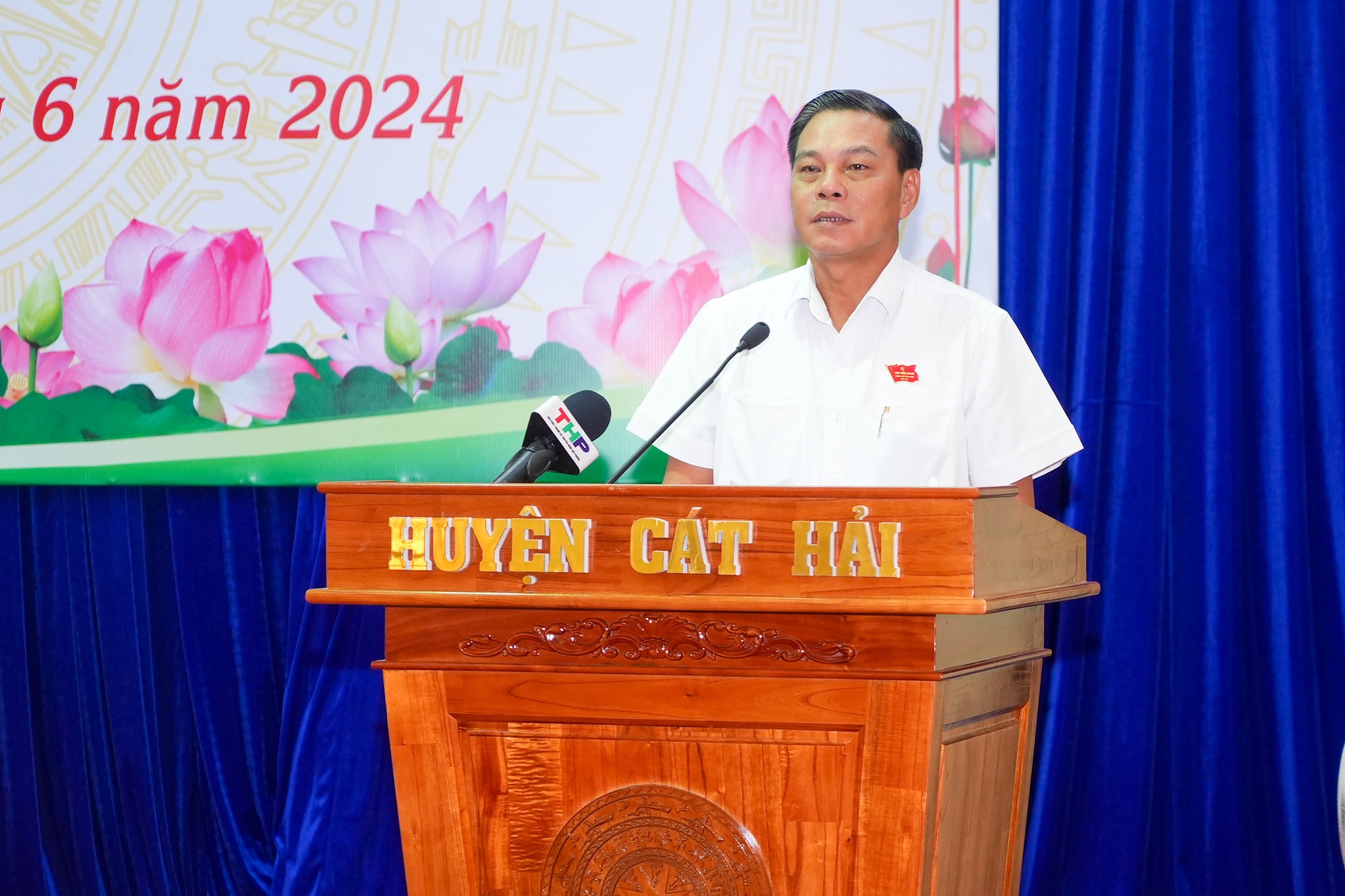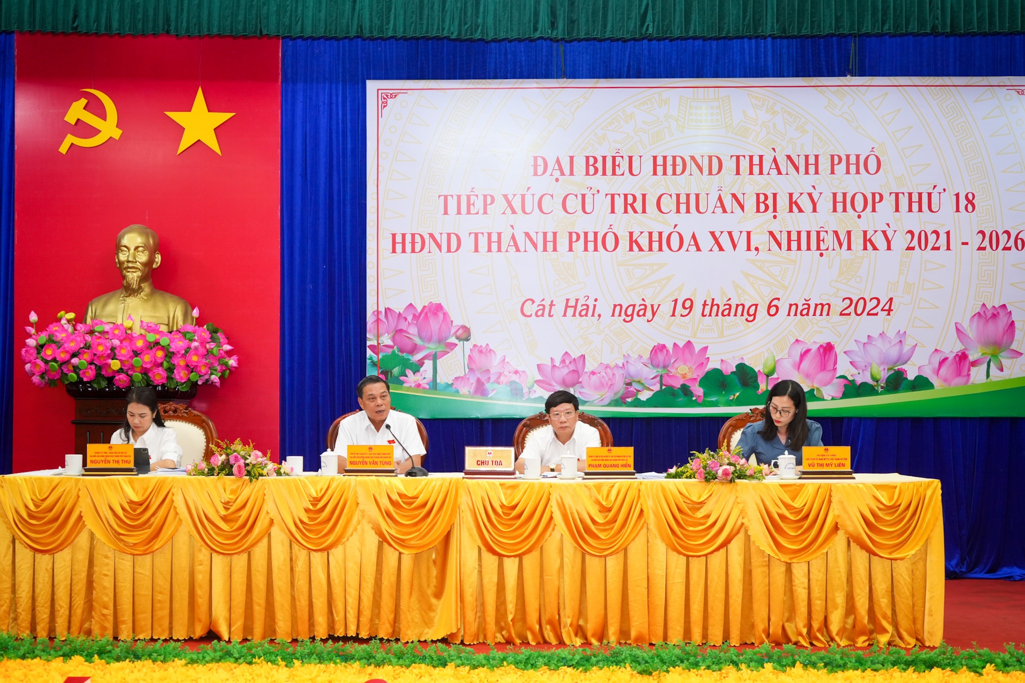 Cử tri huyện Cát Hải bày tỏ vui mừng trước những kết quả về kinh tế, xã hội mà thành phố đạt được 6 tháng qua. Cử tri huyện cũng kiến nghị liên quan đến một số vấn đề như: Thành phố quan tâm chỉ đạo, có kế hoạch đầu tư mở rộng tuyến đường Tân Vũ-Lạch Huyện và Cầu Tân Vũ; sớm triển khai và hoàn thiện các thiết chế văn hóa tại khu tái định cư Nghĩa Lộ; có giải pháp lắp đặt hệ thống đèn chiếu sáng tại tuyến đường ô tô Tân Vũ-Lạch Huyện đoạn từ chân cầu Tân Vũ xuống đến cảng Lạch Huyện.