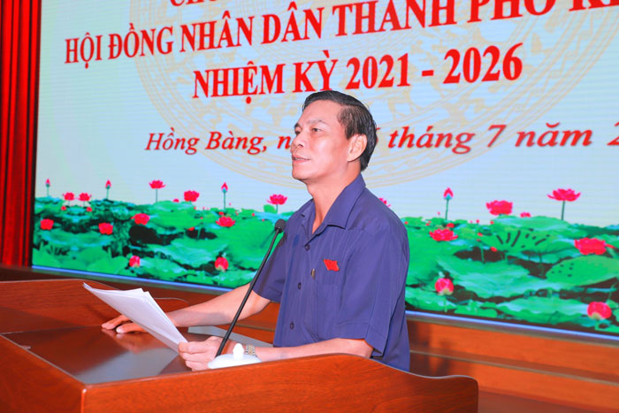 Thay mặt tổ đại biểu HĐND thành phố, đồng chí Nguyễn Văn Tùng, Phó Bí thư Thành ủy, Chủ tịch UBND thành phố cảm ơn cử tri và Nhân dân quận Hồng Bàng đã tín nhiệm bầu là đại biểu HĐND thành phố. Đặc biệt, trong 6 tháng vừa qua, người dân thành phố nói chung và quận Hồng Bàng nói riêng đồng lòng, chung sức cùng thành phố ủng hộ những quyết sách của thành phố, nhất là chỉ đạo phòng chống dịch COVID-19; góp phần cùng thành phố thực hiện thành công nhiệm vụ chính trị, phát triển kinh tế, phòng chống dịch và bảo đảm an ninh trật tự…