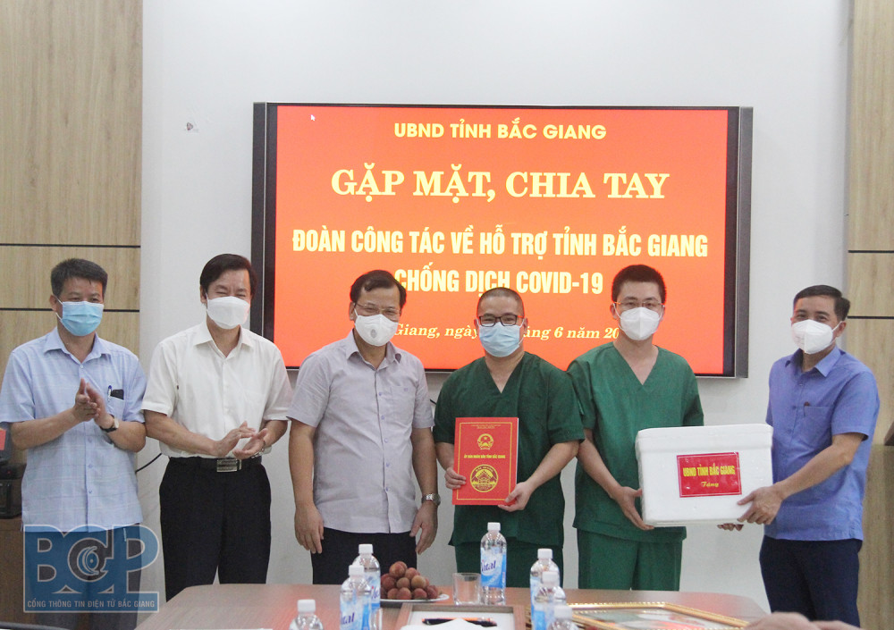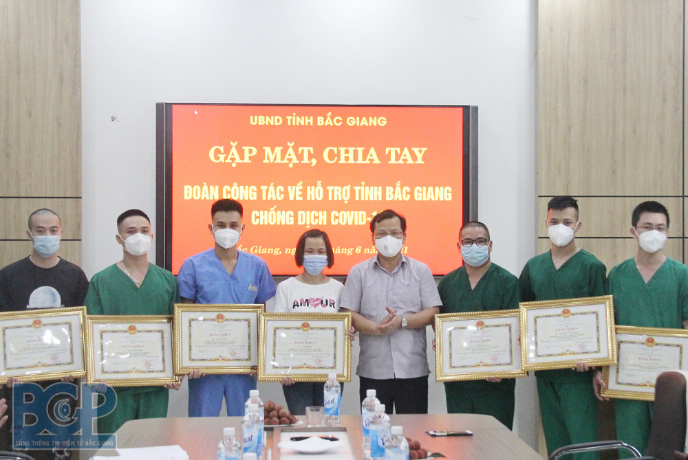 Nhân dịp này, Phó Chủ tịch UBND tỉnh Phan Thế Tuấn đã trao Bằng khen của Chủ tịch UBND tỉnh cho 18 cá nhân trong Đoàn có nhiều đóng góp trong công tác phòng, chống dịch COVID-19 tại tỉnh Bắc Giang.