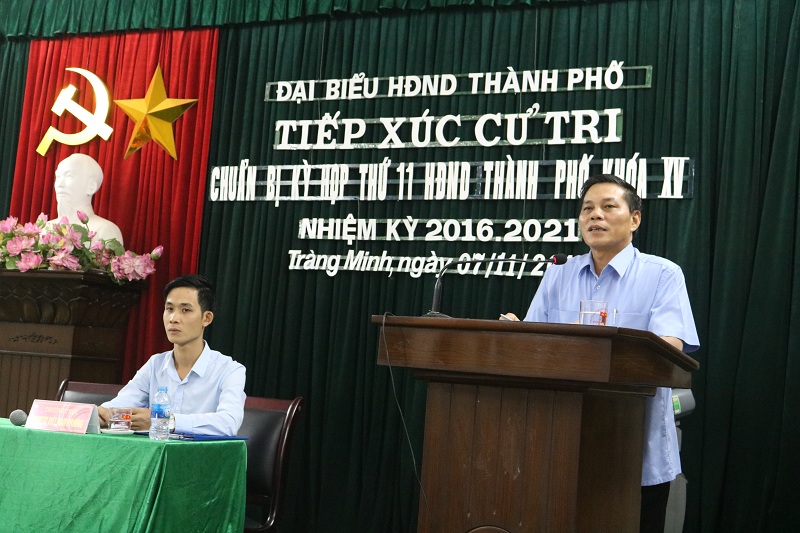 Cử tri phường Tràng Minh bày tỏ niềm vui mừng, phấn khởi trước những kết quả nổi bật, sự phát triển bứt phá trên nhiều lĩnh vực của thành phố và tập trung kiến nghị một số vấn đề sau: đề nghị thành phố sớm hoàn thiện dự án nhà máy xử lý nước thải tại phường Tràng Minh; quan tâm bố trí quỹ đất làm điểm tập kết, tổ chức sản xuất của làng nghề để khắc phục tình trạng ô nhiễm môi trường hiện nay; sớm cải tạo, nâng cấp một số tuyến đường như đường Đất Đỏ, đường Trần Văn Cẩn, cải tạo vỉa hè tuyến đường 354 qua địa bàn phường Tràng Minh, khảo sát, cắm biển báo cấm đỗ, bảo đảm an toàn giao thông trên các tuyến đường vào Bệnh viện Lao và bệnh phổi, Bệnh viện chỉnh hình; giải quyết dứt điểm việc cấp đất trái thẩm quyền tại khu vực đường Đất Đỏ để người dân có nơi xây dựng nhà ở; sớm triển khai dự án chuyển đổi diện tích đất nông nghiệp sang dự án ươm giống cây trồng công nghệ cao trên địa bàn phường…