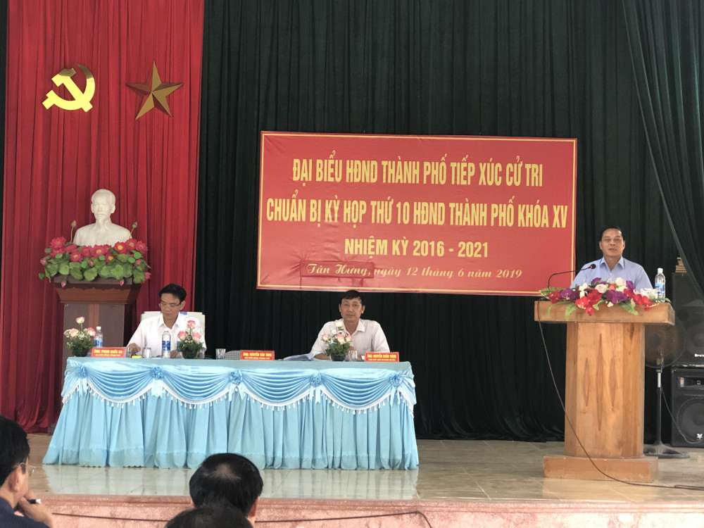 Tại cuộc tiếp xúc, cử tri của các xã, thị trấn trên địa bàn đã được nghe lãnh đạo huyện báo cáo về tình hình KTXH, QPAN thành phố 6 tháng đầu năm 2019, các nhiệm vụ, giải pháp 6 tháng cuối năm, các đề án sẽ trình tại kỳ họp thứ 10 HĐND thành phố khoá XV sắp tới. Tiếp đến, đại diện cử tri các địa phương có ý kiến về một số vấn đề như: