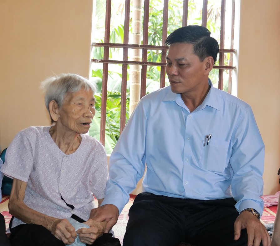 Đồng chí Nguyễn Văn Tùng, Phó Bí thư Thành ủy, Chủ tịch UBNDTP thăm gia đình mẹ liệt sĩ Ngô Thị Đới, sinh năm 1919, tại thôn Lào Hai, xã Cấp Tiến