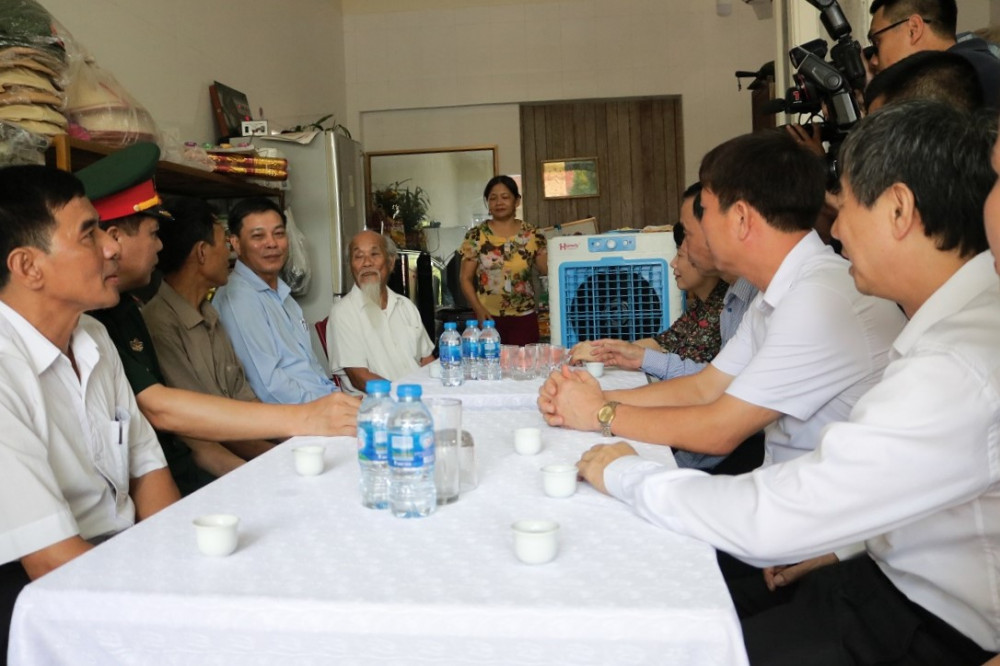 Đồng chí Nguyễn Văn Tùng, Phó Bí thư Thành ủy, Chủ tịch UBNDTP thăm gia đình thương binh Đào Duy Thiệu (thương binh hạng 3/4) tại xã Bạch Đằng