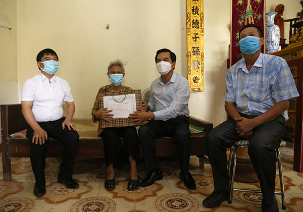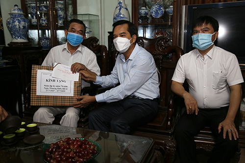 Chủ tịch Ủy ban MTTQ Việt Nam thành phố Cao Xuân Liên ân cần thăn hỏi, động viên chúc sức khỏe ông, bà. Đồng chí mong ông, bà và gia đình phát huy truyền thống cách mạng, nuôi dạy con, cháu phát huy truyền thống gia đình, gương mẫu chấp hành tốt mọi chính sách pháp luật của nhà nước, vận động gia đình và thôn xóm thực hiện tốt công tác phòng, chống dịch COVID-19, góp phần xây dựng quê hương, đất nước.