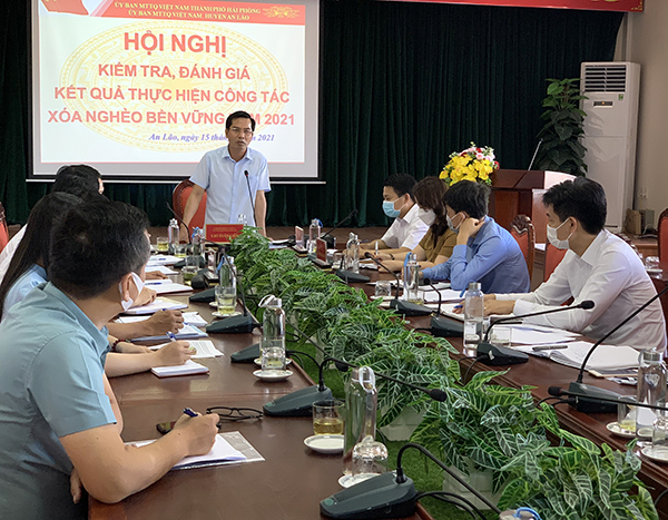 Sáng 15/6, đồng chí Cao Xuân Liên, Ủy viên Ban Thường vụ Thành ủy, Chủ tịch MTTQ Việt Nam thành phố chủ trì cuộc họp với huyện An Lão về thực hiện nhiệm vụ xóa nghèo. Cùng dự có đại diện lãnh đạo Sở Lao động, Thương binh và Xã hội; Ban Dân vận Thành ủy. Về phía huyện An Lão có các đồng chí Thường trực Huyện ủy; Chủ tịch UBND huyện, Phó Chủ tịch UBND huyện; Chủ tịch Ủy ban MTTQ Việt Nam huyện.