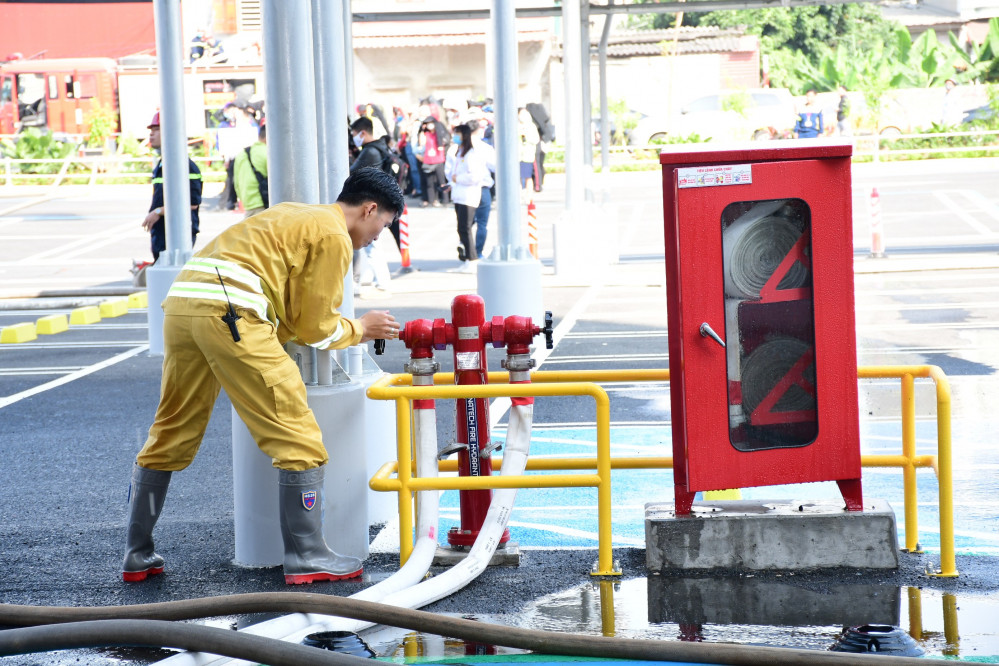 Lực lượng PCCC cơ sở thực tập sử dụng các nguồn nước, phương tiện PCCCC.