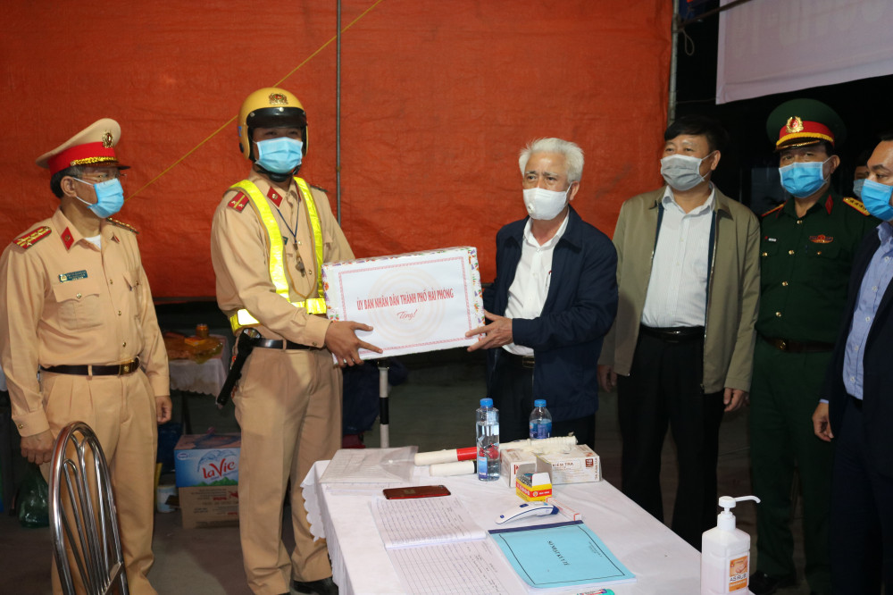 Nhân dịp này, thay mặt lãnh đạo Thành ủy, HĐND, UBND thành phố, Phó chủ tịch UBND thành phố đã tặng quà động viên lực lượng chức năng đang làm việc tại các chốt.