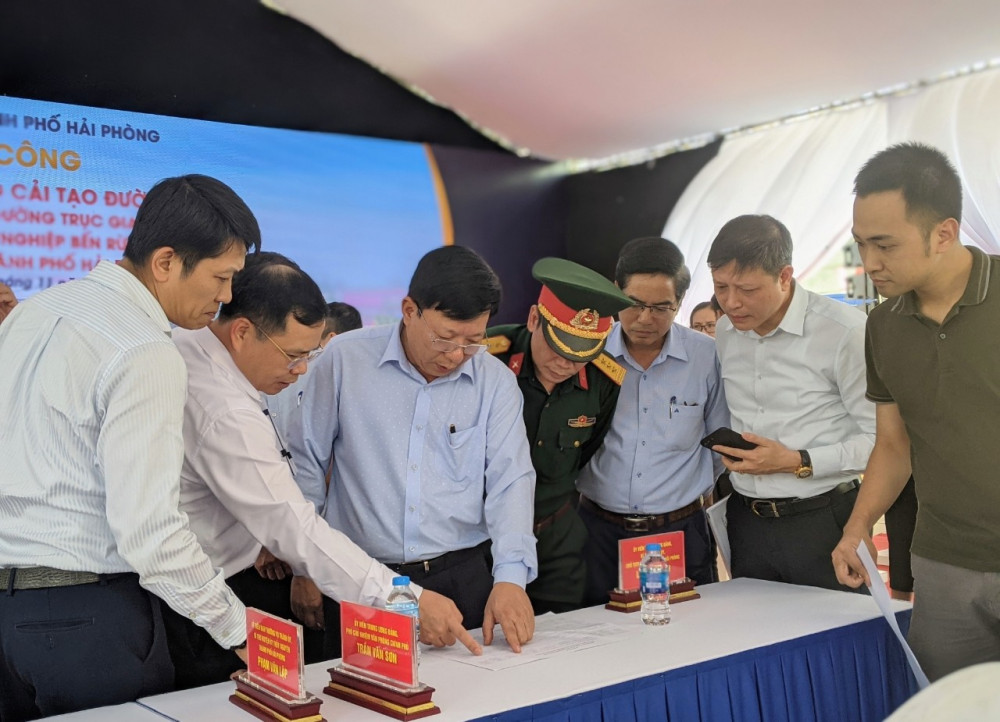 Kiểm tra tại khu vực tổ chức Lễ khởi công, Phó Chủ tịch Nguyễn Đức Thọ yêu cầu huyện Thủy Nguyên tiếp tục khẩn trương dọn dẹp vệ sinh môi trường tại khu vực diễn ra buổi Lễ và trên các tuyến đường xung quanh; tuyên truyền vận động các hộ dân hai bên đường thực hiện dọn vệ sinh, treo hồng kỳ hưởng ứng sự kiện.