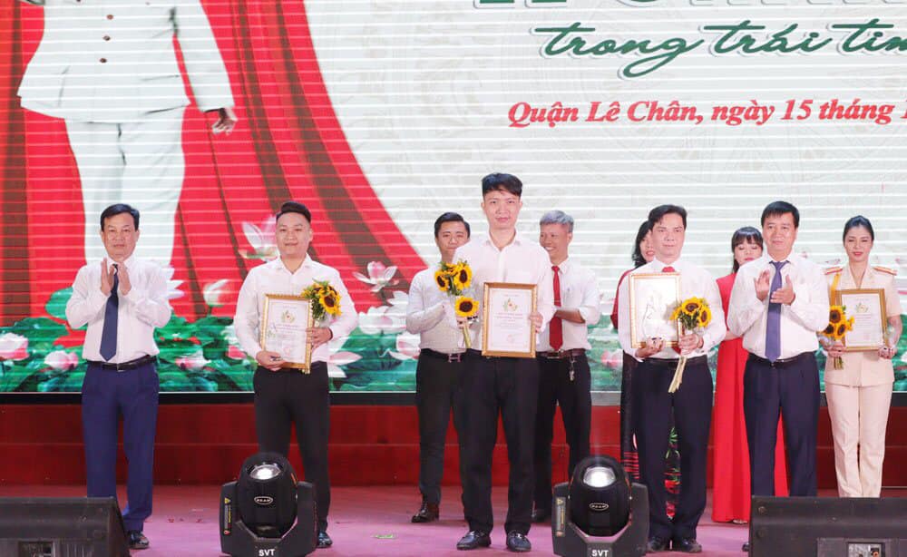 Đến dự có các đồng chí: Đào Khánh Hà, Ủy viên Ban Thường vụ Thành ủy, Trưởng Ban Tuyên giáo Thành ủy; Lê Trung Kiên, Ủy viên Ban Thường vụ Thành ủy, Trưởng Ban quản lý Khu kinh tế Hải Phòng và đại diện lãnh đạo các sở, ban, ngành, quận Lê Chân.