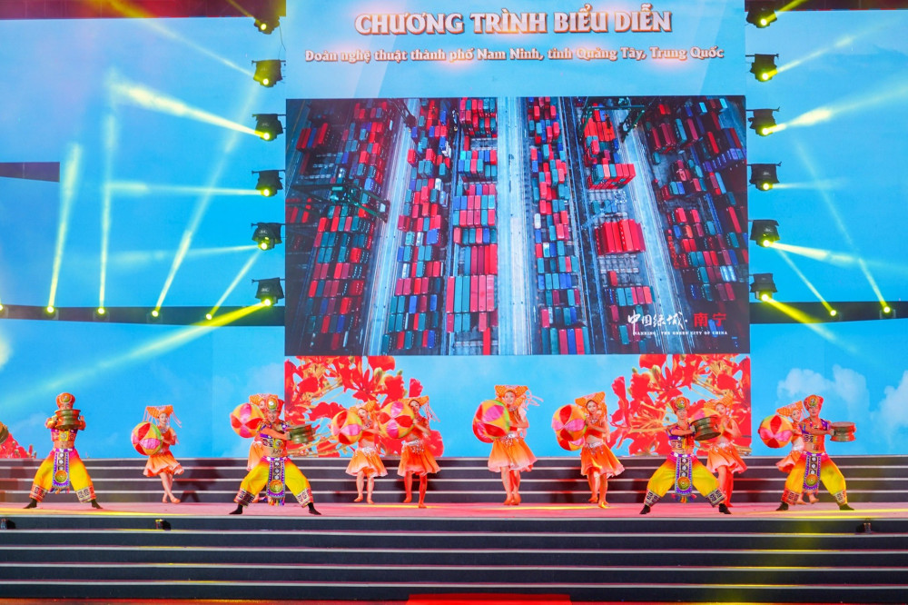 Chương trình biểu diễn của Đoàn đã mang đến các điệu múa truyền thống đan xen với các vũ đạo hiện đại; các bài hát, tiết mục biểu diễn nhạc cụ truyền thống của Trung Quốc nội dung nói về những thành tựu phát triển kinh tế và xã hội, tinh thần đoàn kết phấn đấu, tương trợ giúp đỡ lẫn nhau của các dân tộc tại Quảng Tây; bài hát chủ đề của Liên hoan Thanh niên Việt-Trung, điển hình thành công của tác phẩm giao lưu văn hóa giữa hai nước Việt Nam-Trung Quốc…