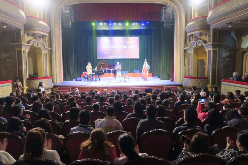 Tối 16/2, tại Nhà hát thành phố, UBND thành phố Hải Phòng phối hợp với Đại sứ quán Italy tại Việt Nam tổ chức Chương trình hòa nhạc “Tam tấu Luca Ciarla và Mike Del Ferro” (Jazz goes to the Opear) hướng tới Kỷ niệm 50 năm thiết lập quan hệ ngoại giao Việt Nam-Italy.