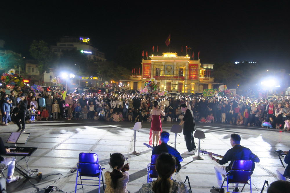 Tối 01/01, Trung tâm Văn hóa thành phố tổ chức Chương trình nghệ thuật đường phố tại khu vực quảng trường Nhà hát thành phố và bờ hồ Tam Bạc thu hút đông đảo Nhân dân, du khách trong và ngoài nước tham dự.