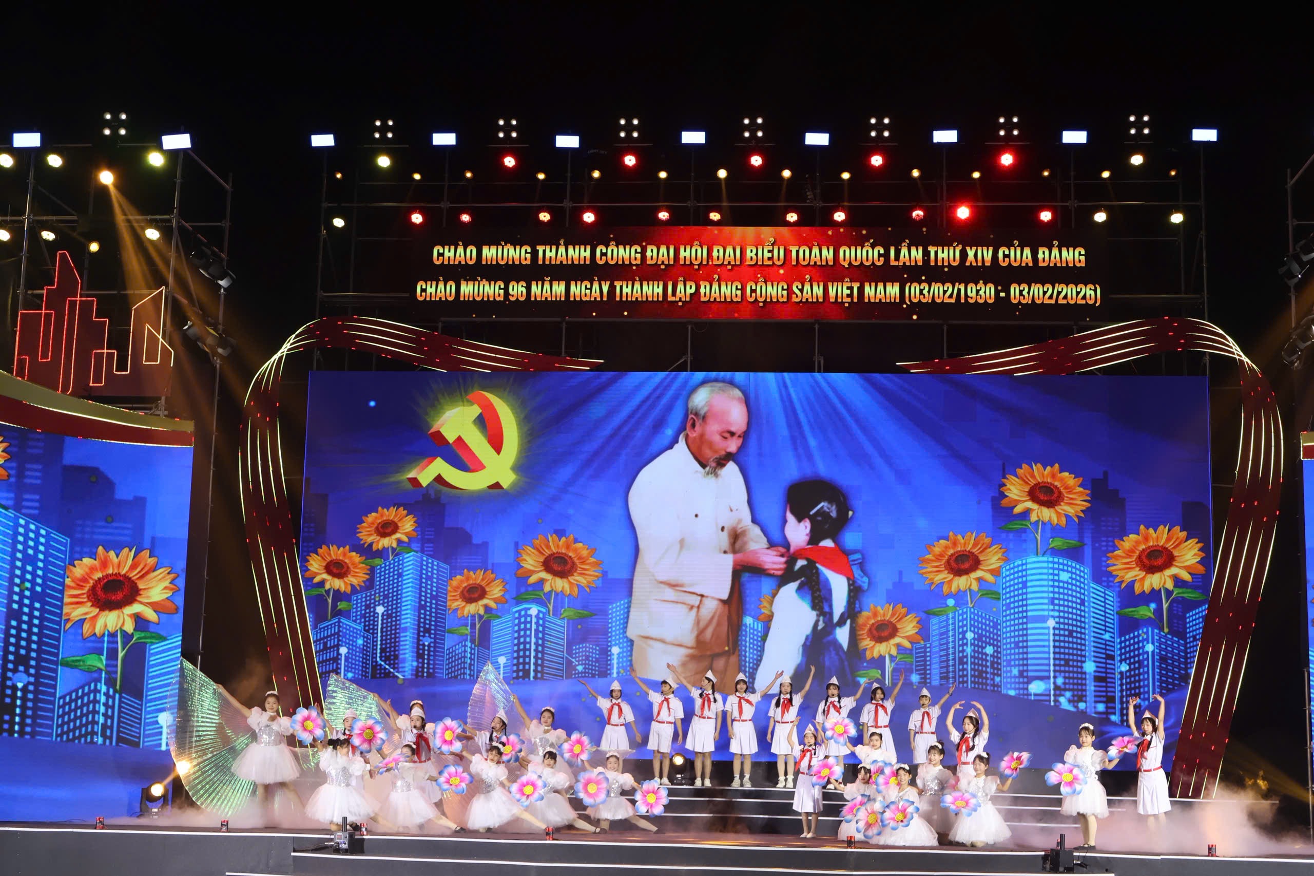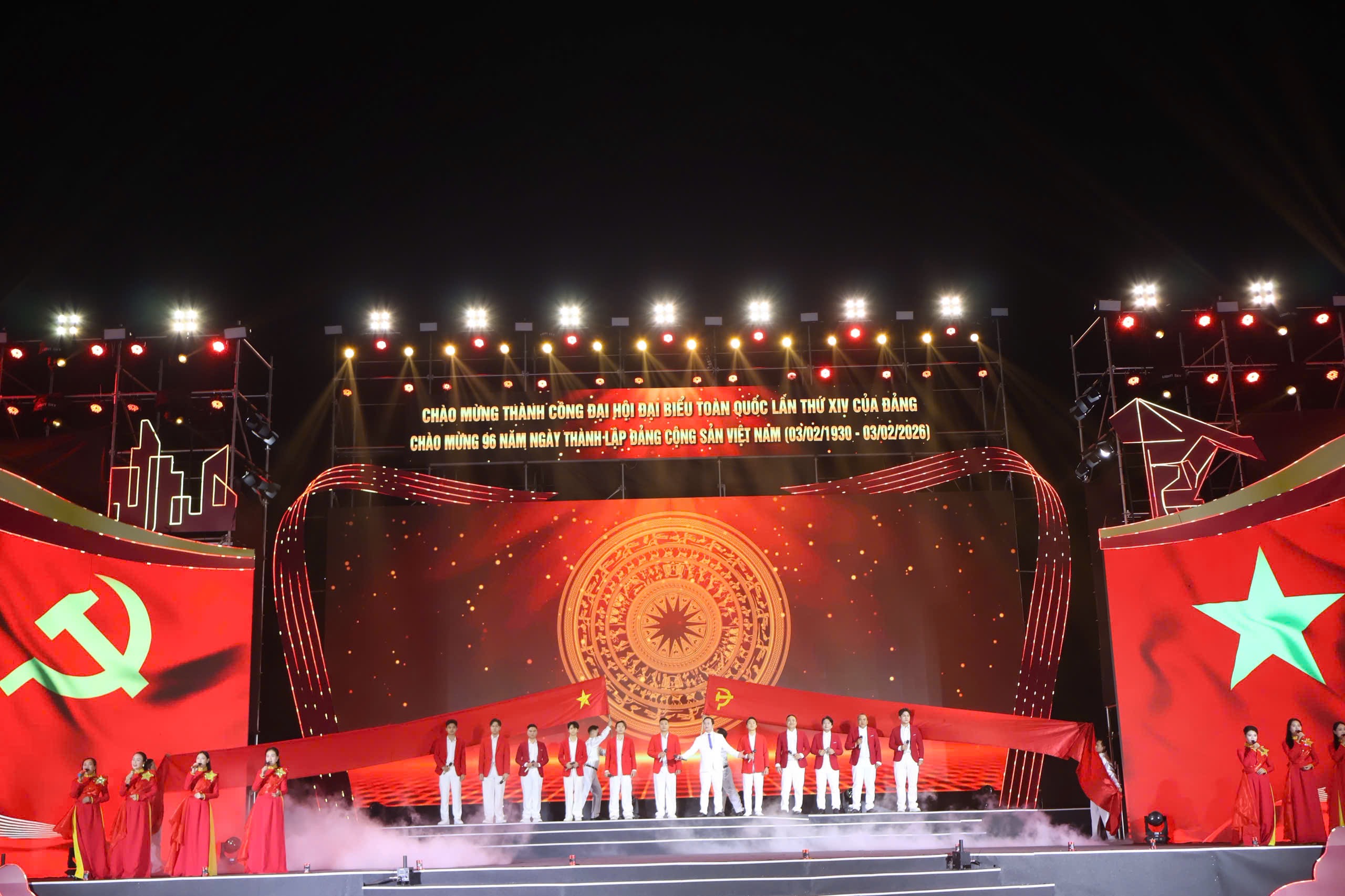 Tối 24/1, Thành ủy – HĐND – UBND – Ủy ban MTTQ Việt Nam thành phố tổ chức chương trình nghệ thuật “Sáng mãi vầng dương – Rạng ngời khát vọng” chào mừng thành công Đại hội đại biểu toàn quốc lần thứ XIV của Đảng, kỷ niệm 96 năm Ngày thành lập Đảng Cộng sản Việt Nam (3/2/1930 – 3/2/2026). Chương trình được truyền hình trực tiếp từ hai điểm cầu quảng trường Nhà hát thành phố và quảng trường Trung tâm Văn hóa Xứ Đông.