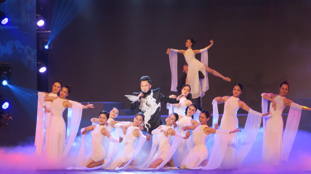 Ca sĩ Tùng Dương và tốp múa biểu diễn ca khúc “Thiên thai”