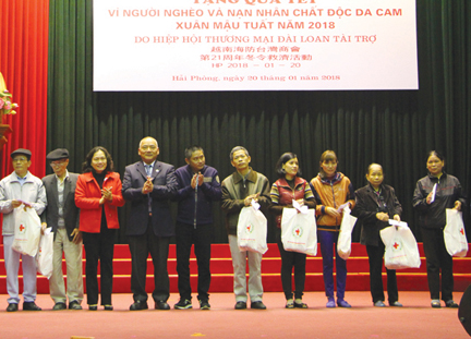 Hội Chữ thập đỏ Hải Phòng phối hợp với Hiệp hội thương mại Đài Loan tại Hải Phòng tặng quà Tết người nghèo và nạn nhân chất độc màu da cam.
