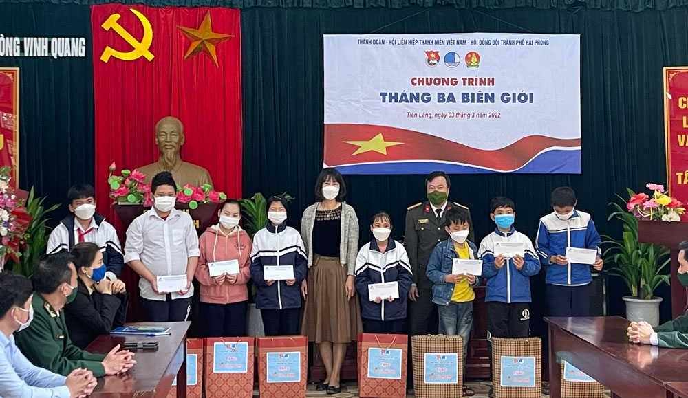 Thiết thực chào mừng kỷ niệm 63 năm ngày truyền thống Bộ đội Biên phòng, 33 năm ngày Biên phòng toàn dân, 91 năm ngày thành lập Đoàn TNCS Hồ Chí Minh. Sáng 3/3, tại xã Vinh Quang, huyện Tiên Lãng, Thành đoàn Hải Phòng – Hội LHTN thành phố tổ chức chương trình “Tháng Ba biên giới” năm 2022; thăm, tặng quà cho các chiến sỹ Đồn Biên phòng xã Vinh Quang và thiếu nhi có hoàn cảnh khó khăn của xã Vinh Quang.