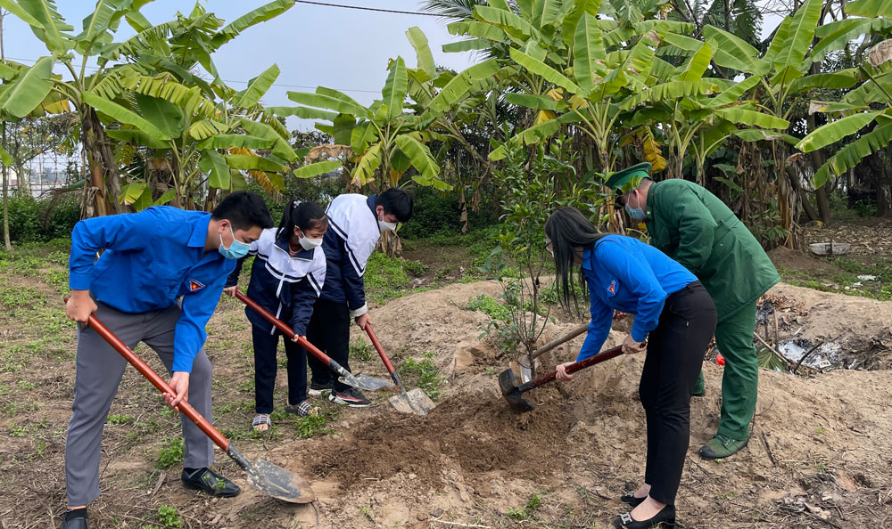 Trong khuôn khổ chương trình, Thành đoàn, Huyện đoàn Tiên Lãng và Đồn Biên phòng xã Vinh Quang đã tổ chức trồng cây xanh trong khuôn viên của Đồn.