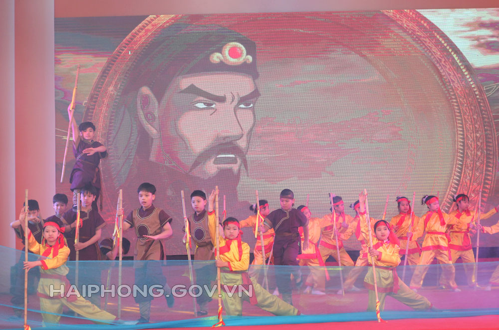 Phần “Sóng cuộn Bạch Đằng Giang” với dàn múa minh họa trong âm nhạc hào hùng, tái hiện hình ảnh Đức Vương Ngô Quyền – người anh hùng dân tộc đã triệu tập nghĩa binh, kết nối lòng người, bày binh bố trận đánh tan giặc Nam Hán, chấm dứt hơn 1.000 năm Bắc thuộc, mở ra một kỷ nguyên mới – kỷ nguyên độc lập tự chủ của dân tộc. Mảnh đất phía Đông Bắc của Đất Cảng đã tự hào được mang tên – Ngô Quyền.