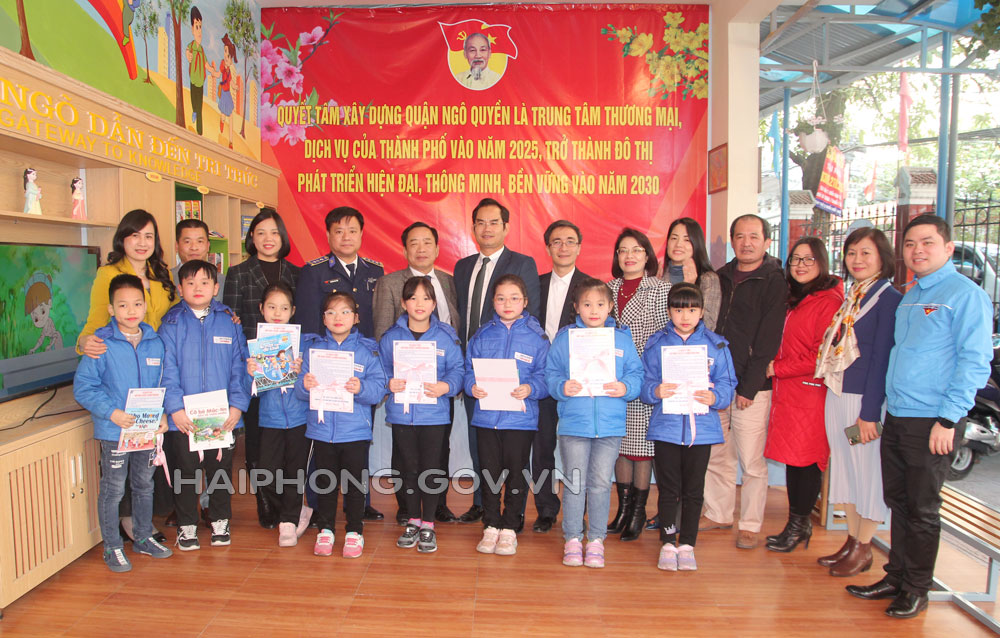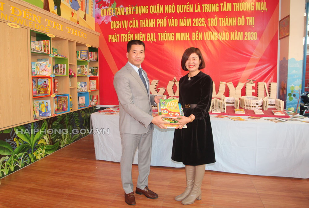 Nhân dịp này, lãnh đạo Sở Giáo dục và Đào tạo và Trường Tiểu học Chu Văn An đã trao tặng sách cho thư viện của Trường Tiểu học Trần Quốc Toản – công trình chào mừng 60 năm thành lập quận Ngô Quyền.