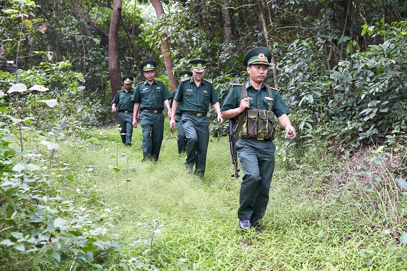 Các chiến sỹ biên phòng (Đồn biên phòng Đồ Sơn) tuần tra khu vực rừng nguyên sinh trên đảo hòn Dấu (ảnh: Trần Sơn)