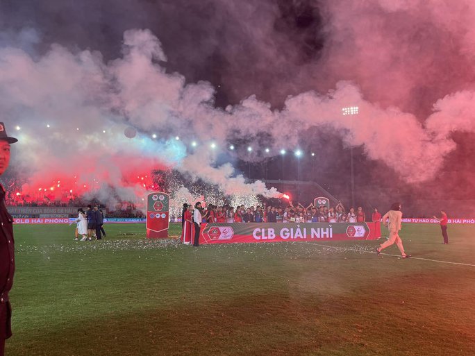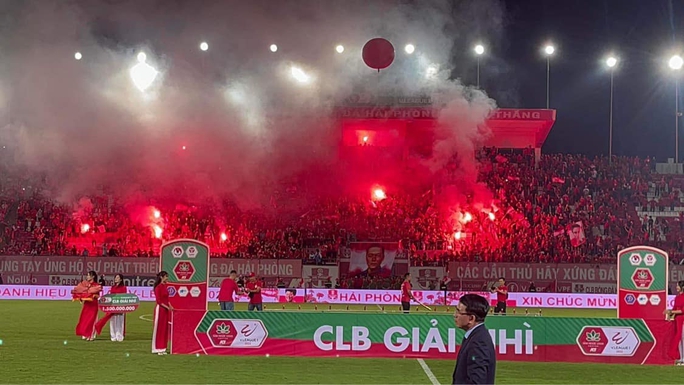 CLB Hải Phòng chính thức đoạt vị trí á quân V-League 2022 sau chiến thắng 4-1 trước đội khách Sông Lam Nghệ An ở vòng 25. Để ăn mừng thành tích này, cổ động viên đội nhà đã đốt hàng chục quả pháo sáng xuyên suốt trận đấu.