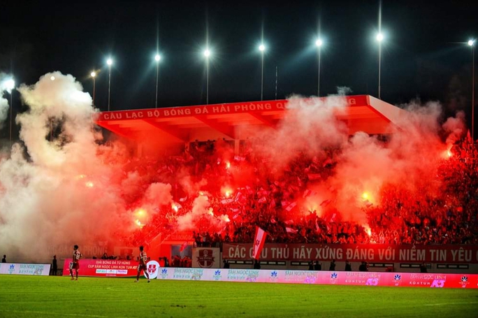 Dù liên tục nhận án phạt nặng từ VFF song ban tổ chức trận đấu trên sân Lạch Tray vẫn chưa thể chấm dứt được tình trạng đốt pháo sáng trên khán đài.