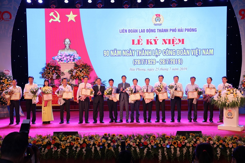 Nhân dịp này, Liên đoàn lao động thành phố được Chính phủ tặng Cờ thi đua xuất sắc năm 2018. Ban chấp hành Đảng bộ thành phố tặng Liên đoàn lao động thành phố bức trướng mang dòng chữ “Phát huy truyền thống 90 năm Công đoàn Việt Nam, công nhân, viên chức, lao động và tổ chức công đoàn Hải Phòng đoàn kết, sáng tạo, đi đầu trong sự nghiệp công nghiệp hóa – hiện đại hóa”. 13 cá nhân được trao kỷ niệm chương “Vì sự nghiệp xây dựng tổ chức Công đoàn”.