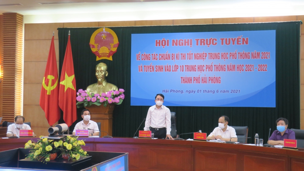 Sáng 1/6, UBND thành phố tổ chức Hội nghị trực tuyến về công tác chuẩn bị kỳ thi tốt nghiệp THPT năm 2021 và tuyển sinh vào lớp 10 THPT năm 2021-2022. Đồng chí Lê Khắc Nam, Phó Chủ tịch UBND thành phố chủ trì Hội nghị; cùng dự có đại diện lãnh đạo các Sở, ngành, địa phương liên quan trên địa bàn thành phố.