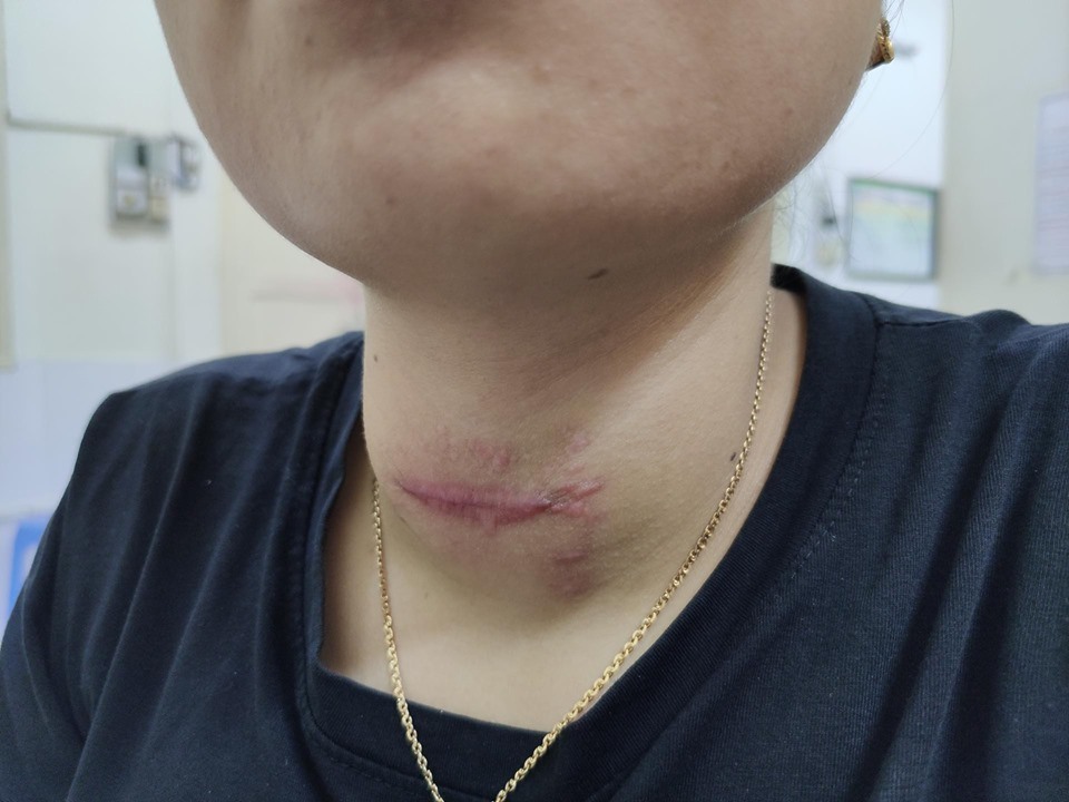 Cô gái trẻ sinh sống và làm việc tại Hải Phòng đã tự chữa Basedow theo phương pháp của thầy lang dẫn tới nhiễm trùng loét vùng cổ nghiêm trọng.
