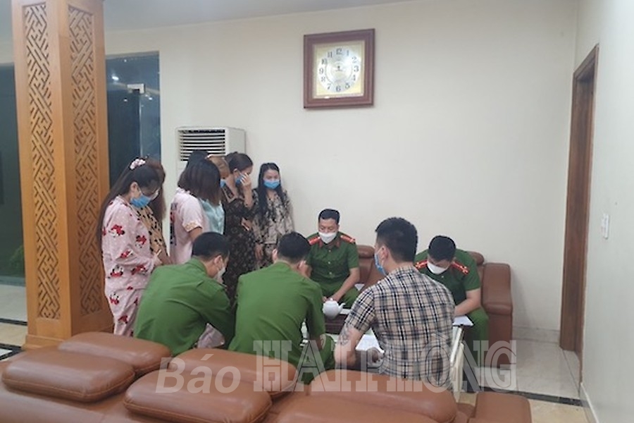 Chiều 14/4, Phòng Cảnh sát quản lý hành chính về trật tự xã hội (Công an thành phố) cho biết: Khoảng 23 giờ 30 phút ngày 13/4, Tổ công tác của đơn vị kiểm tra cơ sở massage-karaoke Thiên Đường (xóm Mới, xã Hồng Thái, huyện An Dương) về việc thực hiện các điều kiện về an ninh trật tự.