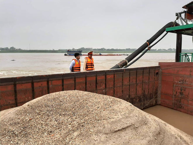 Tổ công tác đã làm rõ người điều khiển phương tiện là Nguyễn Văn Hùng (SN 1981, trú tại thôn Thịnh Thôn) đã cùng 2 người nữa khai thác cát trái phép từ sông Hồng bơm lên khoang chứa hàng của phương tiện.