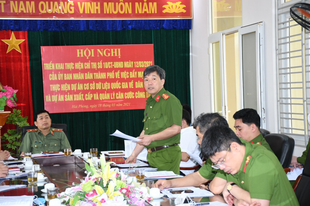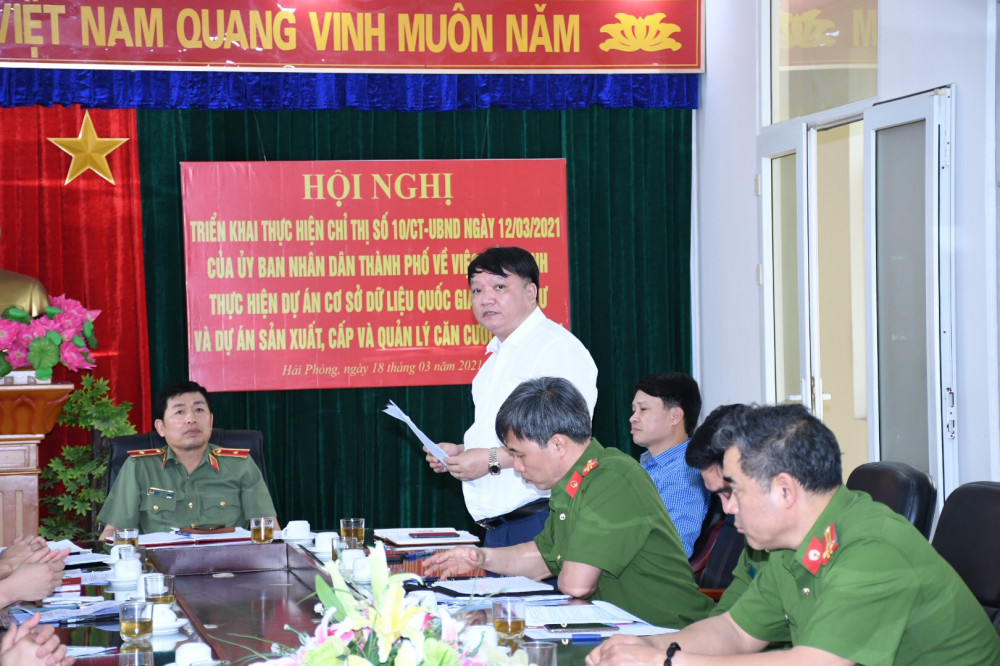 Chiều 18-3, tại trụ sở CAQ Hải An, CATP tổ chức hội nghị triển khai Kế hoạch thực hiện Chỉ thị số 10/CT-UBND ngày 12-3-2021 của UBND TP về việc đẩy mạnh thực hiện dự án Cơ sở dữ liệu quốc gia về dân cư (CSDLQG về DC) và dự án Sản xuất, cấp, quản lý CCCD.